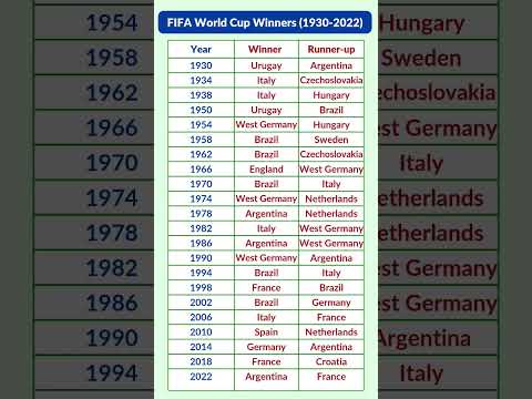 History FIFA World Cup Winners (1930-2022) | History of Champions. #football #fifa #gk admin November 25, 2025 No Comments